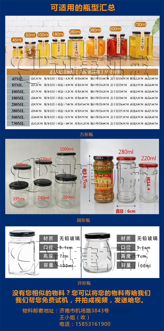 適用瓶型范圍:瓶型直徑范圍40~110毫米,瓶高度范圍 55~180毫米。