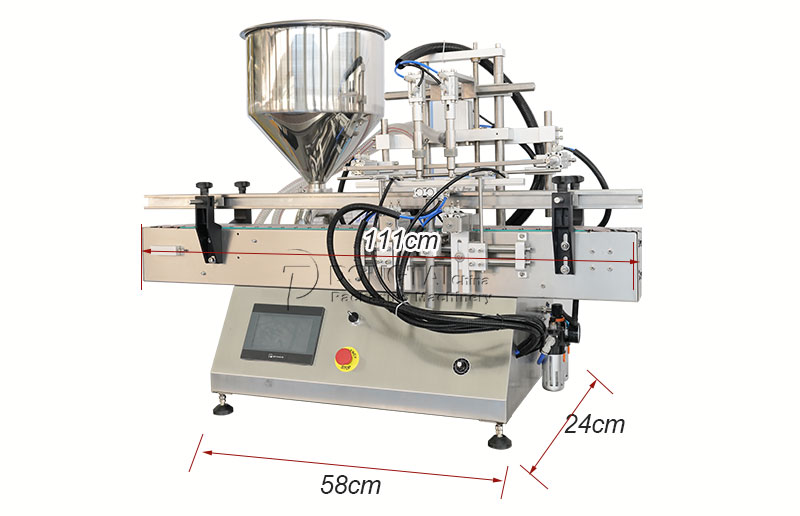 該機(jī)為半自動(dòng)活塞式液體灌裝機(jī),設(shè)計(jì)合理,外形緊湊,垂直結(jié)構(gòu),節(jié)省空間。SLG雙頭立式液體灌裝機(jī)結(jié)構(gòu)簡單合理,精度高,操作簡單。灌裝頭采用了防抽氣升降灌裝裝置,灌裝量和灌裝速度可任意調(diào)節(jié)。該液體灌裝機(jī)適用于醫(yī)藥,日化,食品,農(nóng)藥及特殊行業(yè)。液體灌裝機(jī)是理想的粘度液體灌裝設(shè)備。物料接觸部件由316L不銹鋼制成,符合GMP要求。灌裝閥由電磁閥控制,灌裝精度高。的液體灌裝機(jī)易于操作。氣動(dòng)組件使用德國FESTO和臺(tái)灣AirTac氣動(dòng)組件。