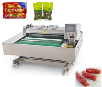 真空包裝機抽氣效果不好除了與機器本身有關系例如:氣管漏氣,電磁閥漏氣,真空泵損壞或缺少維護,也與操作人員的操作方法相關,日前售后人員調試設備發現客戶操作人員在使用真空機機器正常運轉,真空度表,電腦板時間調節與運行都很正常,但是抽真空包裝后產品包裝袋內的空氣并沒有抽干,還有很多殘留空氣滯留在真空包裝袋內,結果發現由于操作人員在擺放產品時真空包裝袋口擺放長度過長導致真空蓋下壓吸合后,密封條壓在袋口部分,這樣真空包裝機抽氣時根本不能將產品進行真空包裝,僅僅是封口而己,由此可見:經過現場培訓后連續滾動式真空包裝機正常工作。