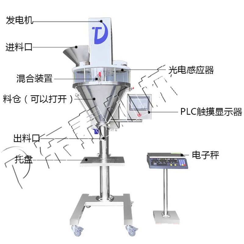 2、粉劑包裝機適合袋類、罐類、瓶類等各種包裝容器粉劑定量包裝。