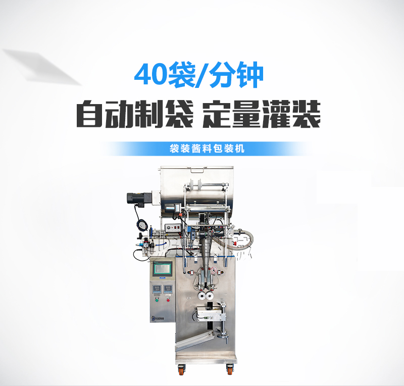 主要用途: DXD-60J醬料包裝機適用于包裝芝麻醬、食用油、洗發(fā)液、調(diào)味汁、油脂、脂膏、化妝品等產(chǎn)品,將其灌入袋內(nèi),能適合各種粘度的產(chǎn)品。該機具有快速、精確、經(jīng)濟和實用的優(yōu)點。雙系統(tǒng)設置,可實現(xiàn)醬與油的分流包裝。