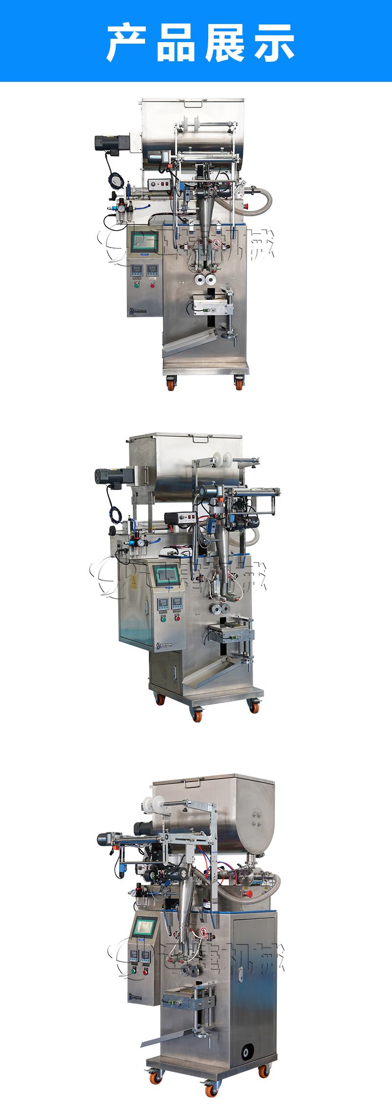 公司主要經(jīng)營兩大類產(chǎn)品:灌裝機和包裝機。其中灌裝機主要產(chǎn)品有:食用油灌裝機、液體灌裝機、膏體灌裝機、自動灌裝機、全自動灌裝機、辣椒醬灌裝機等;包裝機產(chǎn)品有:粉劑包裝機、顆粒包裝機、液體包裝機、自動包裝機、真空包裝機等。